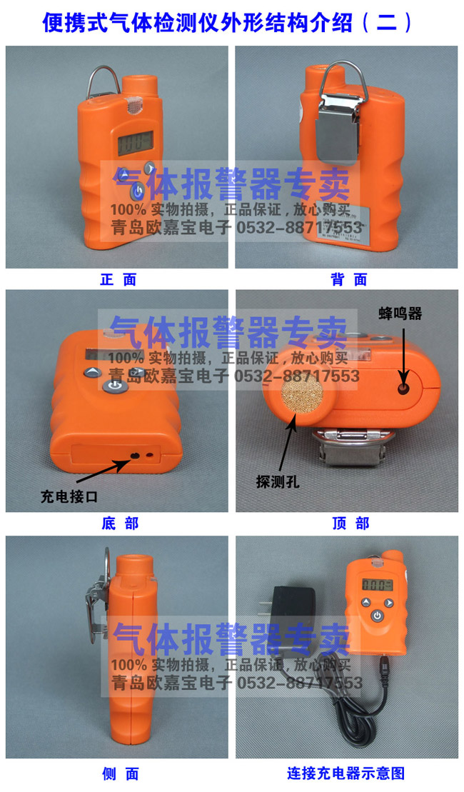 1、便攜式可燃?xì)怏w報(bào)警器是一種檢測可燃、有毒氣體的手持式探測器,使用鋰電池供電。