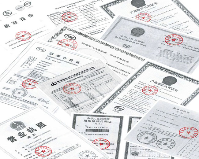 產(chǎn)品資質(zhì)證書:ISO9001:2000質(zhì)量管理體系認(rèn)證、消防產(chǎn)品型式認(rèn)可證及產(chǎn)品檢驗(yàn)報(bào)告、制造計(jì)量器具許可證、防爆合格證等。